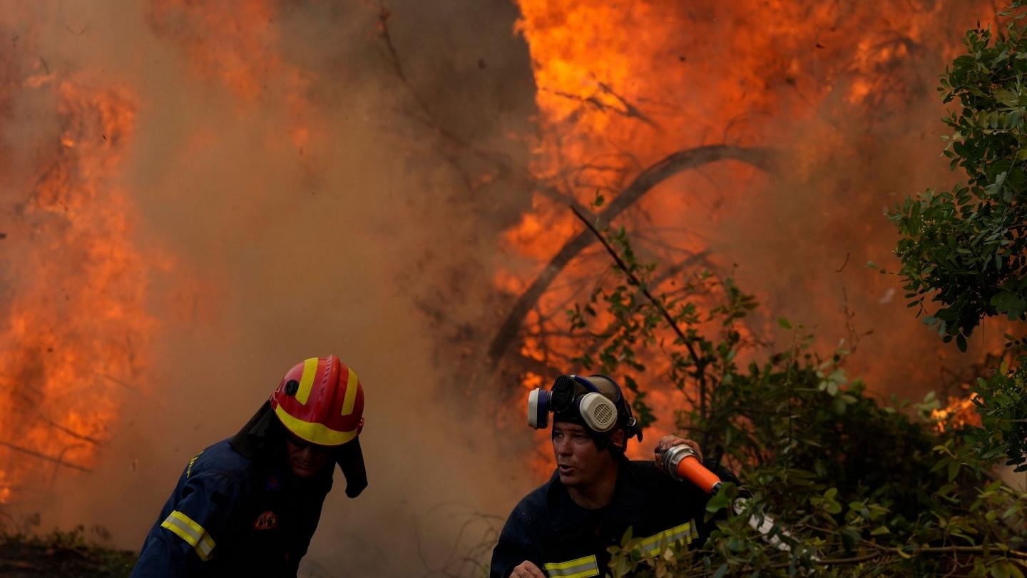 به گزارش خبرگزاری رویترز حریق حدود ساعت ۱۴:۳۰ به وقت گرینویچ در ۲۷ کیلومتری شمال آتن رخ داد و بهسرعت گسترش پیدا کرد. به گفته شاهدان تا ساعتی از شب گذشته، شعلههای آتش از جزیره اویا در حدود ۵۰ کیلومتری آتن قابل مشاهده بود.رسانههای محلی گزارش دادند که در جریان این آتشسوزی دستکم یک خانه تخریب شده است اما آتشنشانی این اطلاعات را تایید نکرد. سازمان آتشنشانی اعلام کرده که گزارشی از مصدومیت گزارش نشده است.