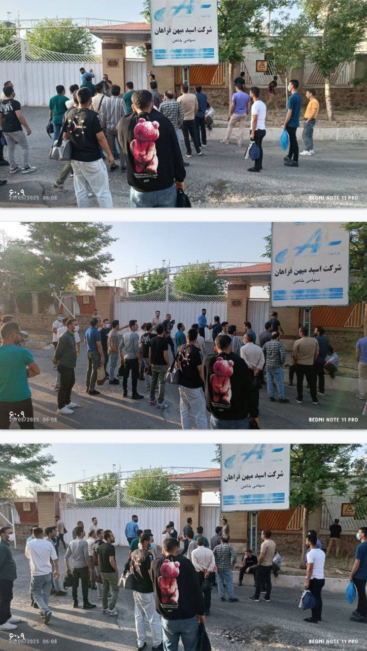 کارگران کارخانه شهرک صنعتی اسید میهن، روز پنجشنبه 8 خرداد ماه، در اعتراض به پخش بوی اسید و ایجاد مشکلات تنفسی، مقابل دفتر مرکزی کارخانه تجمع کردند.