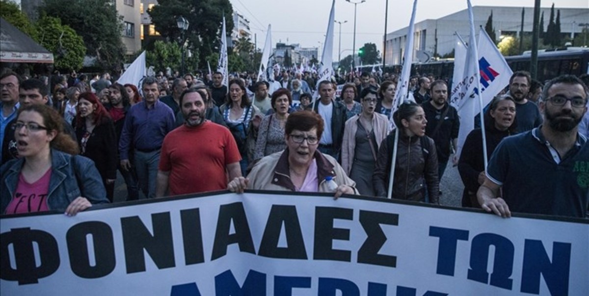 در تابلوهایی که معترضان در دست داشتند، از آنها به عنوان “پایگاههای مرگ” یاد شده است. معترضان خواهان پایان دخالت های این سازمان در یونان و منطقه شدند.