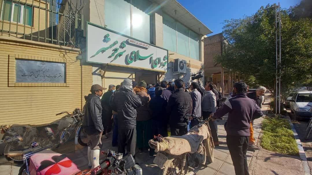 تعدادی از کارگران پیمانی و قراردادی شهرداری خرمشهر، روز سه شنبه 28 دی ماه، در اعتراض به عدم دریافت حقوق چهارماه خود دست از کار کشیدند و برای مطالبه گری مقابل فرمانداری و شورای اسلامی شهر تجمع کردند.