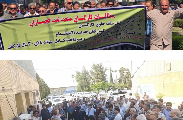 جمعی از کارکنان رسمی شرکت بهره‌برداری نفت و گاز گچساران  روز دوشنبه 5 خرداد ماه در مقابل اداره مرکزی این شرکت دست به تجمع زدند.