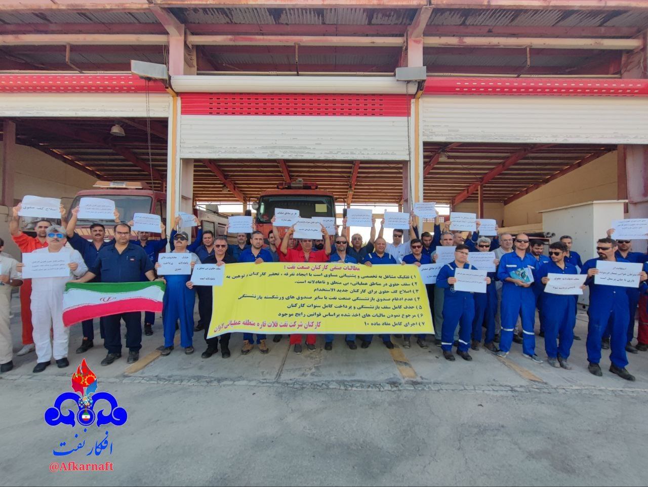 کارگران شرکت نفت فلات قاره خواستار حذف محدودیت سقف حقوق برای کارگران عملیاتی نفت، حذف محدودیت حقسنوات بازنشستگی و عودت کسورات مازاد مالیات” می باشند. در همین حین کارگران رسمی نیز نسبت به عدم اجرای ماده ١٠ قانون وظایف و اختیارات وزارت نفت معترض می باشند. لازم به ذکر است که کارگران در این تجمع اعلام کردهاند: اگر این ماه هم کسورات برداشته نشود و یا اصلاحی صورت نگیرد اعتراضات به ۲ روز در هفته افزایش داده میشود.