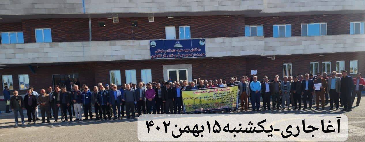 کارگران رسمی شرکت نفت و گاز آغاجاری روز یکشنبه 15 بهمن ماه، در اعتراض به ظلم و بیعدالتی مجددا اقدام به برپایی تجمع کردند.