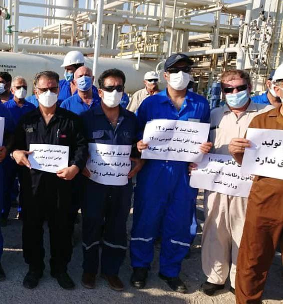 روز دوشنبه 11 مرداد ماه جمعی از کارکنان عملیاتی شرکت نفت فلات قاره شاغل در مناطق عملیاتی لاوان، بهرگان، سکوی نوروز و قشم در محل کار خود تجمع کردند.