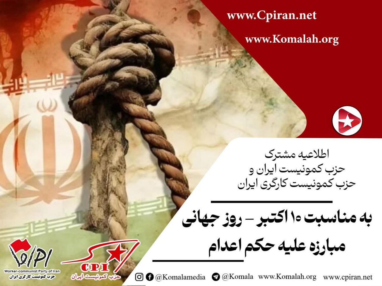 اطلاعیه مشترک حزب کمونیست کارگری ایران و حزب کمونیست ایران به مناسبت ۱۰ اکتبر – روز جهانی مبارزه علیه حکم اعدام