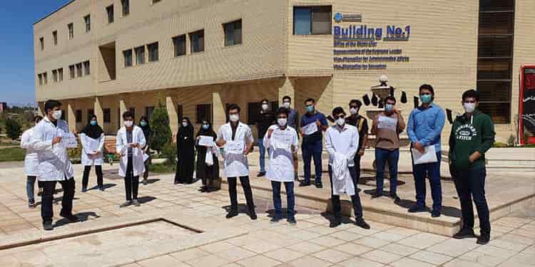 جمعی از دانشجویان داندانپزشکی شیراز روز شنبه 21 فروردین ماه در اعتراض به بی توجهی مسئولین و عدم اقدام موثر در انجام واکسیناسیون دانشجویان علیه کرونا تجمع کردند.