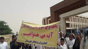 کشاورزان شلتوککار خوزستان روز شنبه 22 خرداد ماه برای چندمین بار در اعتراض به کمبود آب لازم برای فعالیتهای خود و محدود شدن کشت تابستانی مقابل استانداری خوزستان تجمع کردند.