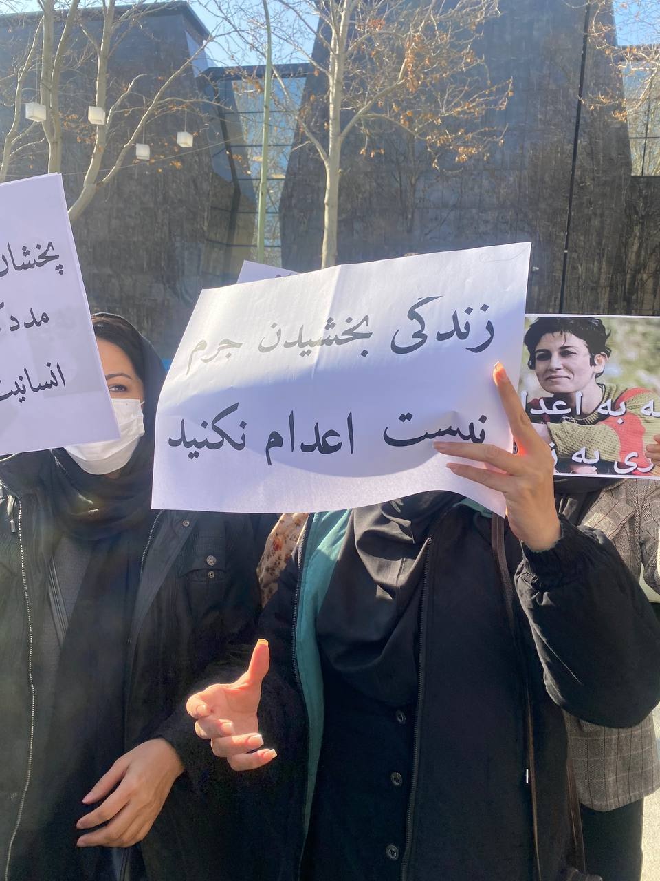 شرکت کنندگان در این تجمع با در دست داشتن پلاکارد و سردادن شعارهای اعتراضی خواستار لغو حکم اعدام مددکار اجتماعی و فعال حقوق زنان، پخشان عزیزی‌ شدند. در جریان این تجمع، بیانیه‌ایی به همین مناسبت توسط یکی از حاضرین قرائت گردید که در آن به لغو حکم اعدام پخشان عزیزی‌ و سایر زندانیان محکوم به اعدام تاکید شده بود