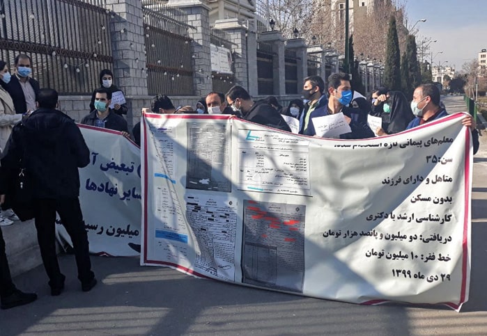 روز دوشنبه ۲۳ فروردین، شماری از معلمان تازه استخدام در اعتراض به سطح نازل دستمزدهای خود مقابل مجلس رژیم در تهران تجمع کردند.