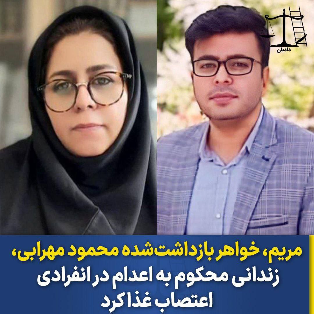مریم مهرابی، خواهر محمود مهرابی زندانی سیاسی محکوم به اعدام، در سلول انفرادی دست به اعتصاب غذا زده است.
