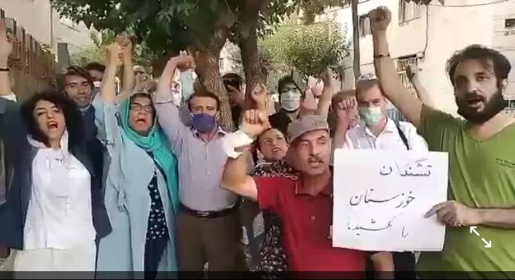 روز سه شنبه 29 تیر ماه در جریان تجمع و راهپیمایی تعدادی از فعالان مدنی در حمایت از مردم خوزستان، تعدادی از آنان از جمله نرگس محمدی، آرش صادقی، آرش کیخسروی، روح‌الله مردانی، جعفر عظیم‌زاده، رسول بداقی، پوران ناظمی، حمید آصفی و بهزاد همایونی توسط نیروهای امنیتی بازداشت و به مکان نامعلومی منتقل شدند.