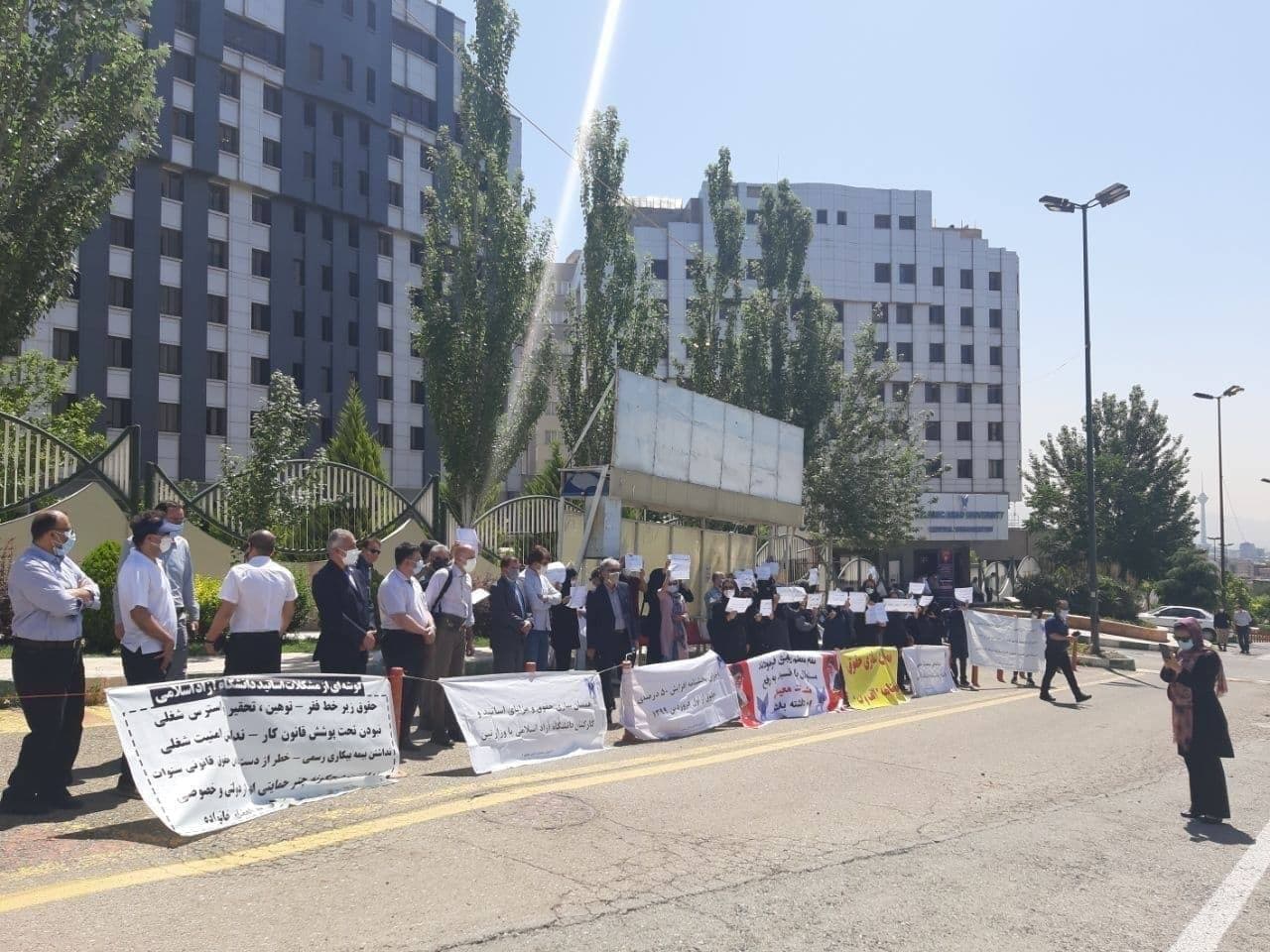 معترضان در خوزستان مقابل ساختمان دانشگاه  دانشگاه آزاد واحد اهواز، در اصفهان مقابل دانشگاه آزاد واحد خوراسگان و در شیراز مقابل دانشگاه آزاد این شهر تجمع اعتراضی برگزار کردند.به گفته این اساتید، حقوق‌شان نسبت به استادان دانشگاه دولتی پایین‌تر است و به آن‌ها اجازه کار متفرقه در خارج از ساعات رسمی هم داده نمی‌شود.