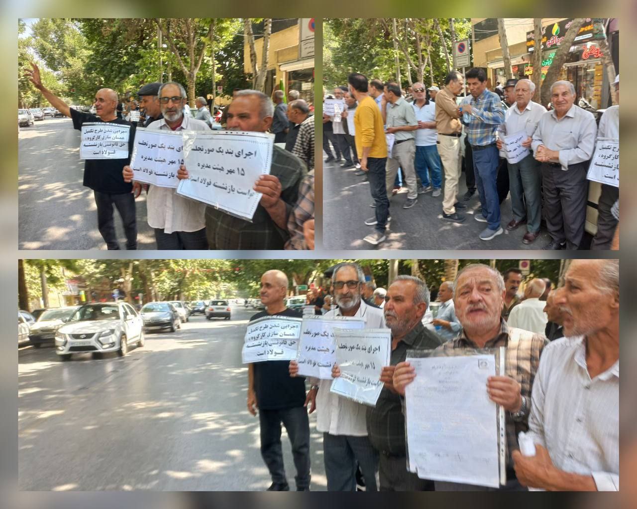 گروهی از بازنشستگان صنایع فولاد در اعتراض به عدم رسیدگی به مطالباتشان در مقابل دفاتر بازنشستگی این صنف در شهرهای:تهران،اصفهان و خوزستان دست به تجمع زدند.