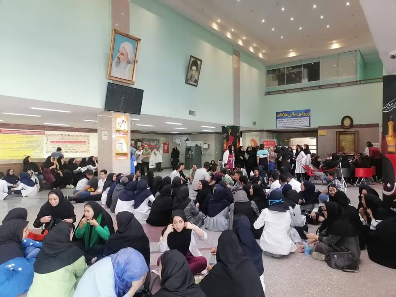 شماری از پرستاران شاغل در بیمارستان های مختلف یزد روز چهارشنبه 4 مهرماه در محل دانشگاه علوم پزشکی و خدمات بهداشتی درمانی صدوقی یزد،از فعالیت های روزانه خود امتناع کردند و در محل کارشان دست به تجمع زدند.