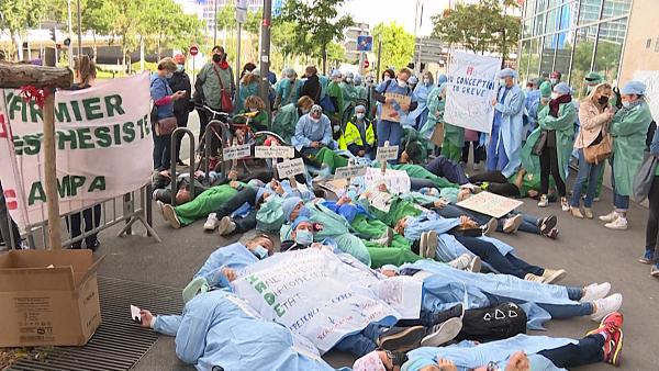 تجمع اعتراضی پرستاران بیهوشی در فرانسه