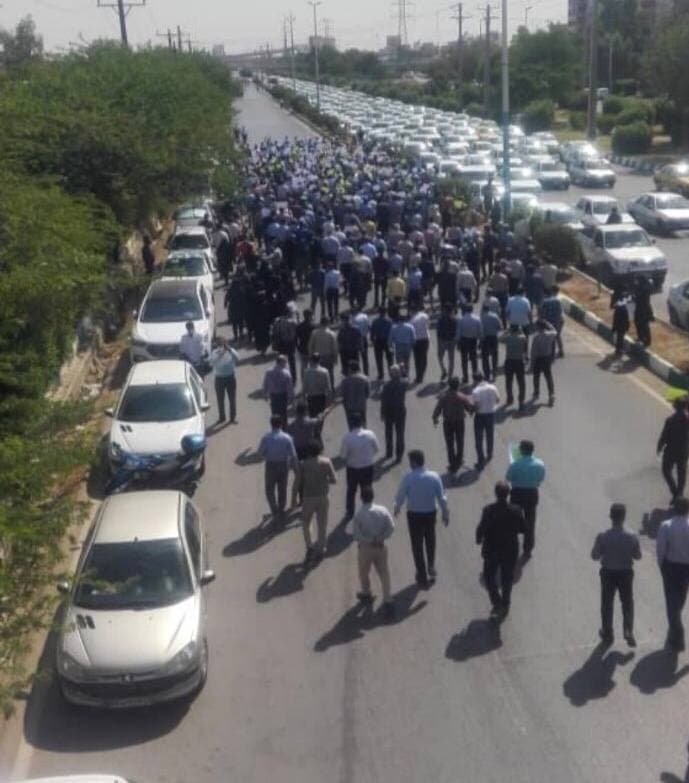 صبح روز چهارشنبه 5 خرداد ماه جمعی از کارکنان رسمی شرکت نفت در شهرهای مختلف از جمله اهواز، آبادان، عسلویه، گچساران، تهران و فلات قاره بهرگان دست به تجمع و راهپیمایی اعتراضی زدند.