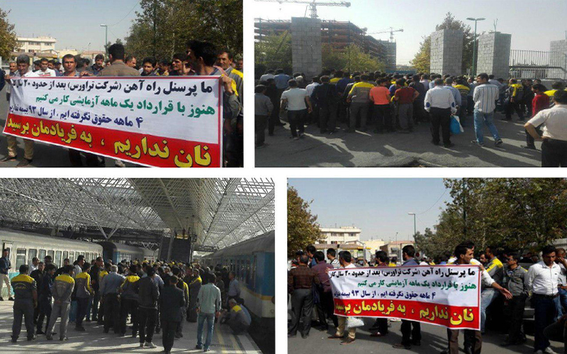 جمعی از کارکنان امور نگهداری خط و ابنیه فنی شرکت خدمات مهندسی راه آهن،روز یکشنبه 5 شهریورماه،جهت خروج از واگذاری مجدد سازمان به بخش خصوصی،مقابل وزارت اقتصاد اقدام به برگزاری تجمع کردند.