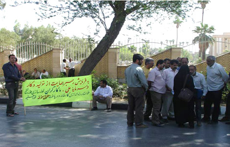 روز دوشنبه ۲۷ اردیبهشت ماه، تعدادی از کارگران شرکت لوله سازی خوزستان در اعتراض به تداوم بلاتکلیفی خود در مقابل ساختمان استانداری واقع در اهواز تجمع کردند.