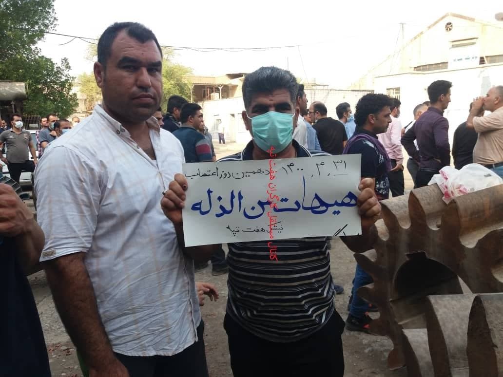 کارگران شرکت هفت تپه از تمامی بخش‌ها، روز پنجشنبه 31 تیر ماه برای دهمین روز متوالی دست به اعتصاب زده و در محوطه این شرکت تجمع کردند.