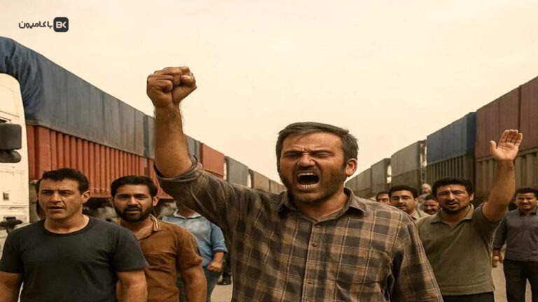 تداوم اعتراض رانندگان کامیون مقابل وزارت صنعت