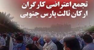 روز پنجشنبه ۱۹ بهمن ۱۴۰۲، کارگران ارکان ثالث پالایشگاه دوم پارس جنوبی، برای پنجمین هفته تجمعات اعتراضی برگزار کردند.