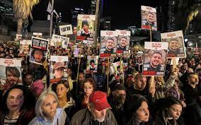 روز شنبه ۲۵ آذرماه شماری از خانواده‌های گروگان‌های در اسارت گروه حماس در اعتراض به  کشته شدن سه نفر از گروگان‌ها با آتش سربازان اسرائیلی در تل‌آویو تجمع کردند و خواستار آزادی هرچه سریعتر بقیه گروگان‌ها و توقف فوری جنگ از جانب حکومت نتانیاهو رئیس جمهور اسرائیل  شدند.