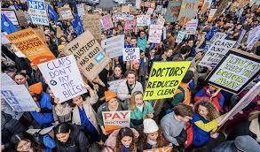 در تجمع اعتراضی پزشکان و پرستاران ایرلندی،برخی از کادرهای درمان با لباسها و آدمکهای کارتونی، سران دولت ایرلند شمالی را به تمسخر گرفتند. کارگران بخش دولتی در منطقه درگیر مناقشات طولانی مدت بر سر حقوق خود هستند. این درحالی است که نخست وزیر ایرلند شمالی روز دوشنبه جزئیات بسته مالی ۲.۵ میلیارد پوندی را به مجلس ایرلند شمالی بهعنوان (بودجه ثبات مالی) تسلیم کرده که اتحادیههای کارکنان بخش عمومی و از جمله پزشکان آن را یک بودجه ریاضتی و در جهت افزودن ریاضت اقتصادی دانستند. کارکنان بخش بهداشت و درمان در این شرایط تورمی انتظار افزایش بودجه بخش درمان را داشتند اما دولت گفته است برای کنترل تورم و تک رقمی کردن آن بودجه بخشهای مختلف را باید انقباضی ببندد.