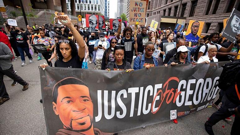 شمار زیادی از فعالان مبارزه با نژادپرستی و شهروندان آمریکایی روز یکشنبه 2 خرداد ماه در آستانه اولین سالگرد کشته شدن جورج فلوید در شهر مینیاپولیس راهپیمایی کردند.