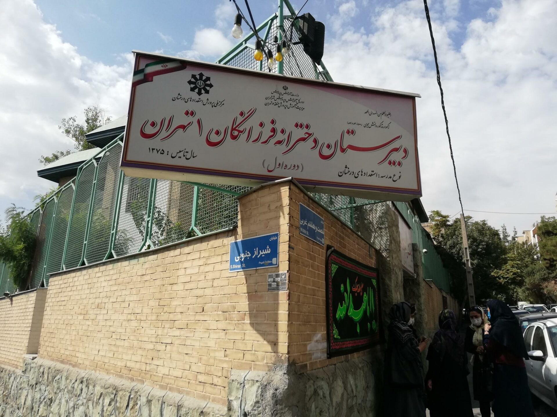 این دبیرستان سال گذشته در خیزش ملی شرکت فعال داشته و به خاطر اینکه مدیر قبلی آن، به نام خانم کردی حاضر به ارائه اطلاعات دانشآموزان معترض به نهادهای امنیتی نشد، برکنار و وابسته به خود رژیم به نام صانعی را در شهریورماه به مدیریت دبیرستان گماشتند.بهانه مدیر جدید برای نصب دوربین، مصرف گل داخل دستشویی توسط دانش آموزان در سال های گذشته است .این مدرسه در میدان فلسطین، خیابان سرپرست، جنب اداره کل آموزش و پرورش شهر تهران واقعشدهاست.