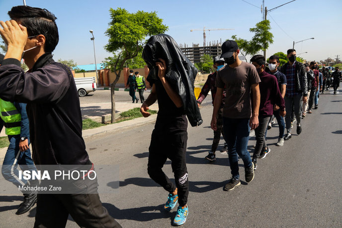 خبرگزاری حکومتی ایرنا از گرداندن این ۳۴ نفر در سطح شهر با عنوان «طرح پیشگیری و برخورد با متهمان حوادث چهارشنبه آخر سال» یاد کرده و گزارش داده است که این طرح با حضور معاون پیشگیری از وقوع جرم دادسرای عمومی و دستگیرشدگان این حوادث اجرا شد. فعالان حقوق بشر همواره به اقدام پلیس ایران در گرداندن تحقیرآمیز متهمان اعتراض کردهاند. آنها میگویند اجرای چنین مجازات و تنبیهی نقض آشکار پیماننامهها و میثاقهای حقوق بشری است.