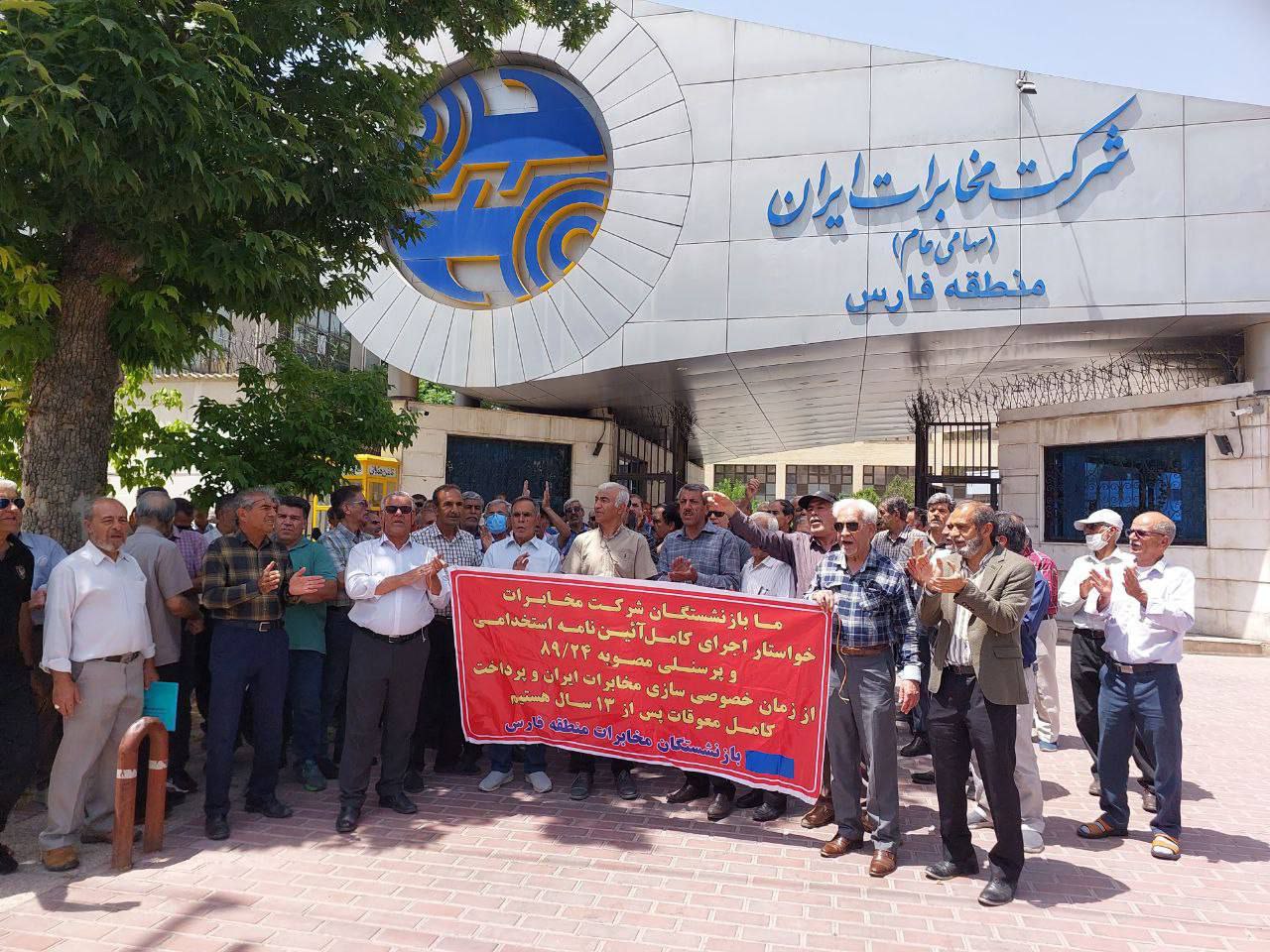 طبق گزارشات منتشر شده ، استانهای کردستان، خوزستان، کرمانشاه، اصفهان، مازندران، لرستان، اردبیل و چند شهر دیگر در اعتراض به عدم‌رسیدگی به مطالباتشان از جمله «اجرای کامل آئین‌نامه پرسنلی و استخدامی سال ۸۹ و رفع مشکلات بیمه درمانی» بار دیگر مقابل شرکت مخابرات شهرهای خود دست به تجمع اعتراضی زدند.گفتنی است، اعتراض اصلی بازنشستگان، “عقب‌ افتادن دستمزدها” و تحقق مطالباتشان برای “جبران عقب ماندگی مزد از سبد معیشت ” است.وضعیت نامناسب اقتصادی در ایران موجب شده است تا تجمعات اعتراضی نسبت به وضعیت معیشت از سوی کارگران و بازنشستگان و برخی دیگر از گروه‌ها به یکی از برنامه‌های روزانه در ایران تبدیل شود